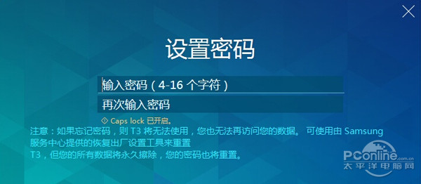 其次在軟件方面,這時三星T3數(shù)據(jù)保護技術(shù)的核心。它為用戶提供了一個可供用戶設(shè)置密碼的方案,采用了AES 256位硬件加密技術(shù),全方位保護數(shù)據(jù)的安全,涵蓋Windows、Mac以及安卓操作系統(tǒng)設(shè)備。即使T3不慎丟失,他人也無法訪問其中存儲的數(shù)據(jù)。