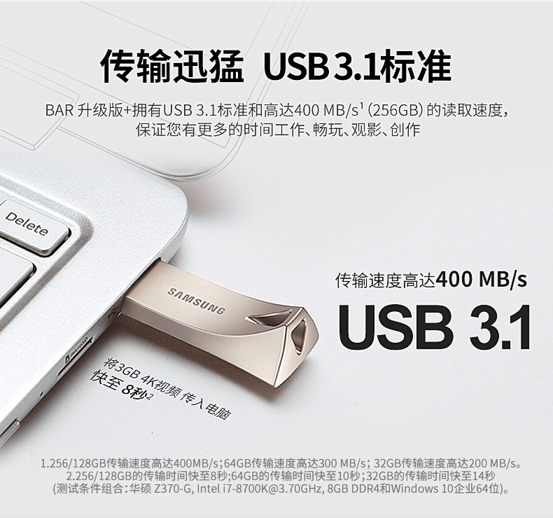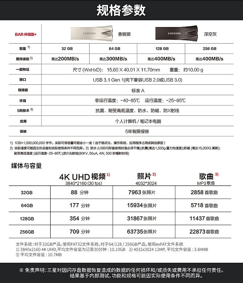 三星(SAMSUNG)BAR升級版+ USB 3.1 Gen 1 閃存盤 深空灰
